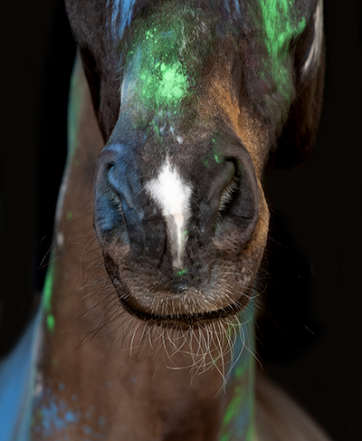 Haarscherpe foto’s met donkere achtergrond van je paard met of zonder jou. Om de foto’s extra speciaal te maken kun je er kleurpoeder aan toevoegen!